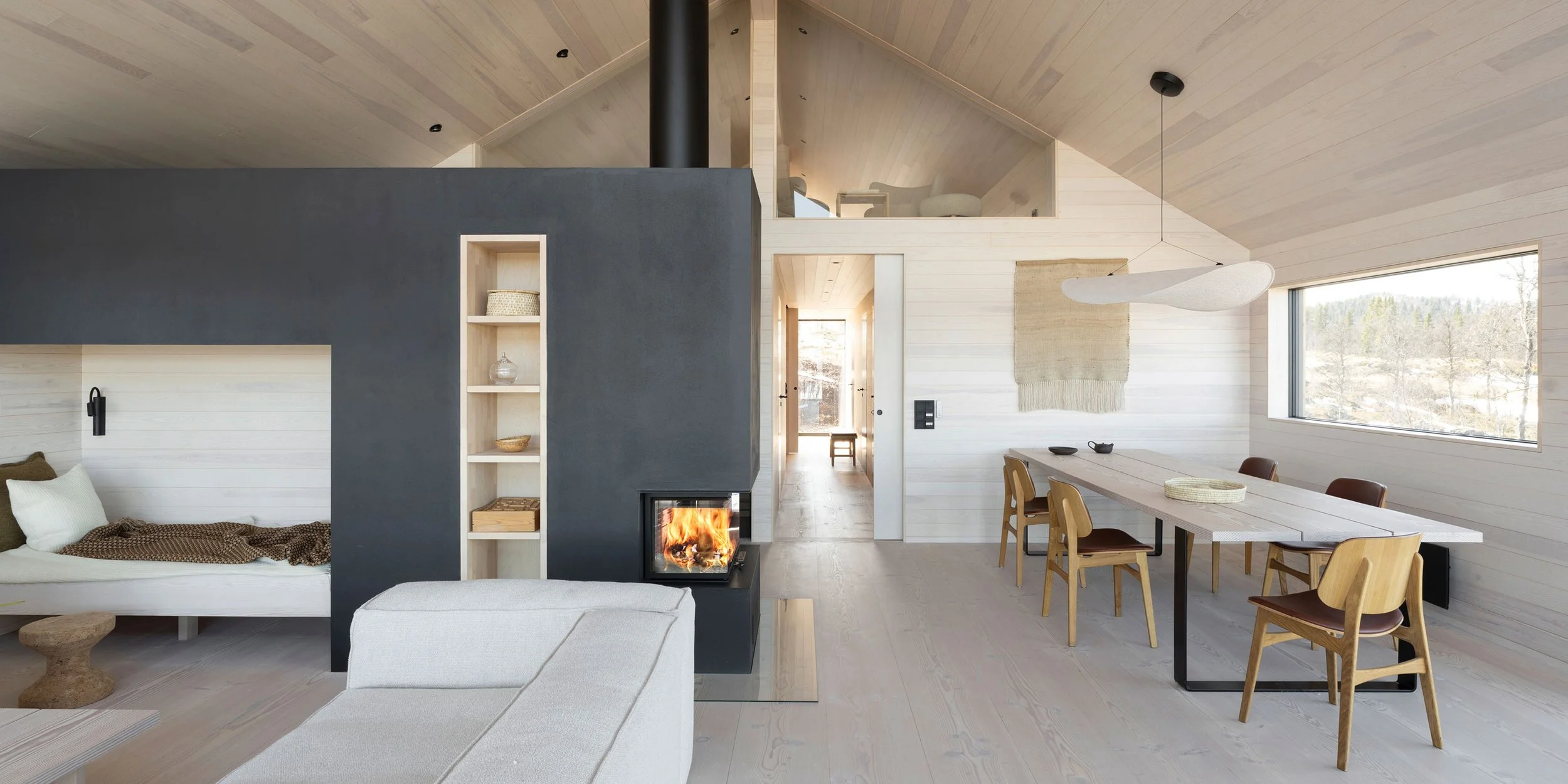Foretrekker du et dempet uttrykk på hytteinteriøret? Nå tilbyr vi et børstet slettpanel i brede planker som et alternativ til vår lyse standardpanel i kvistfri furu.