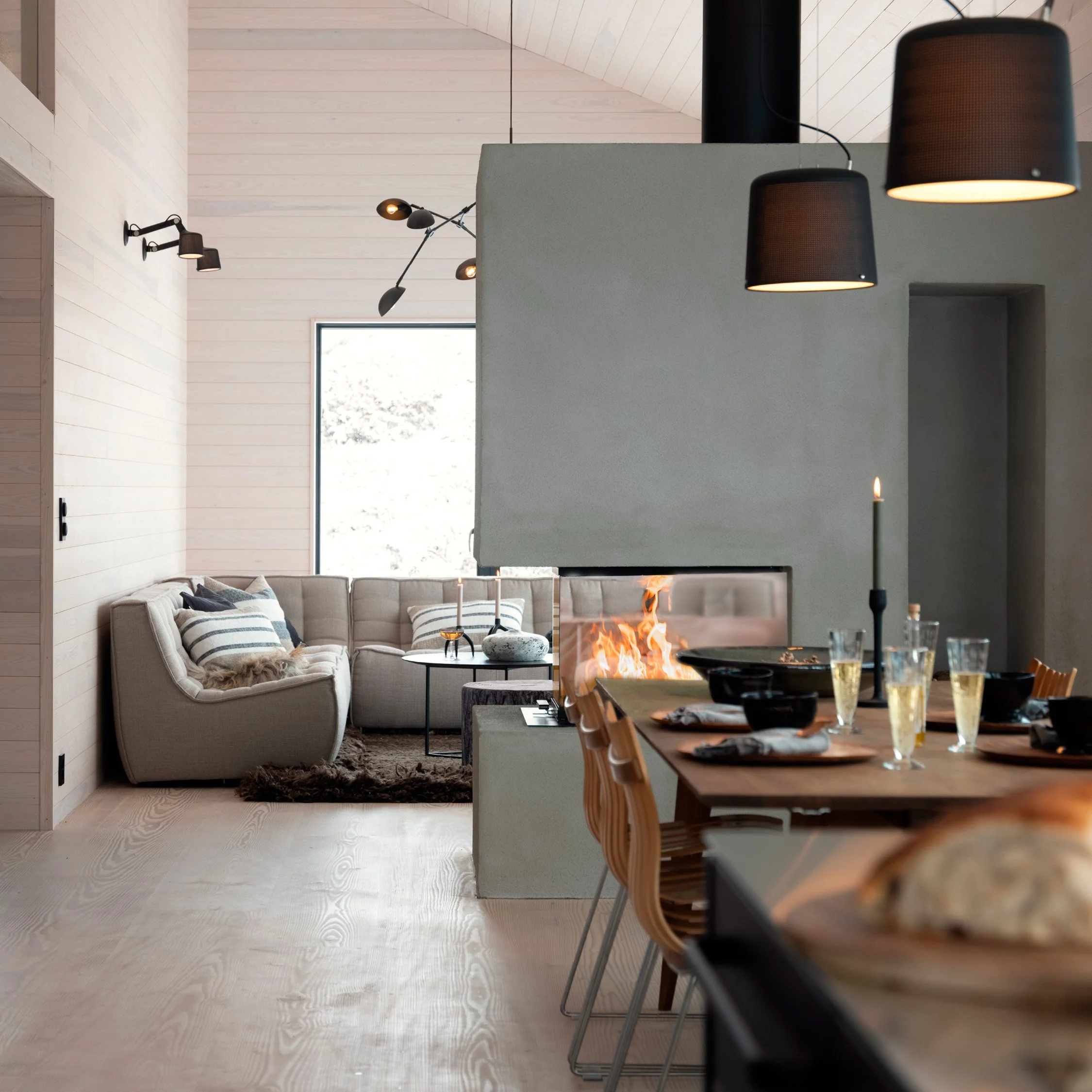 Sikt medium kombinerer romslighet og praktiske løsninger med fantastisk utsikt. Med loft og effektiv planløsning gir hytta deg alle nødvendige rom – i en litt mer kompakt form. Stua i Sikt medium har samme bredde som i Sikt stor.